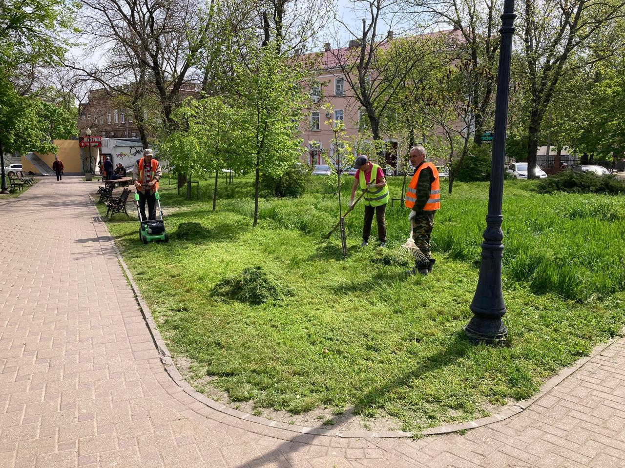 Уже скошена трава по ул. Б. Хмельницкого, на территории набережной, в парке Горького и сквере Пушкина.