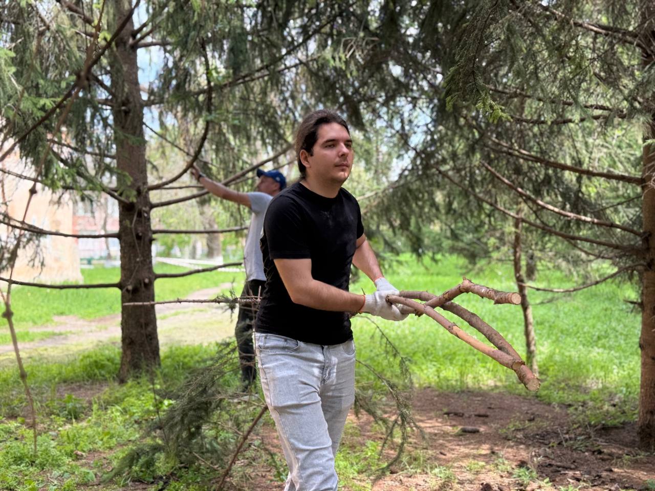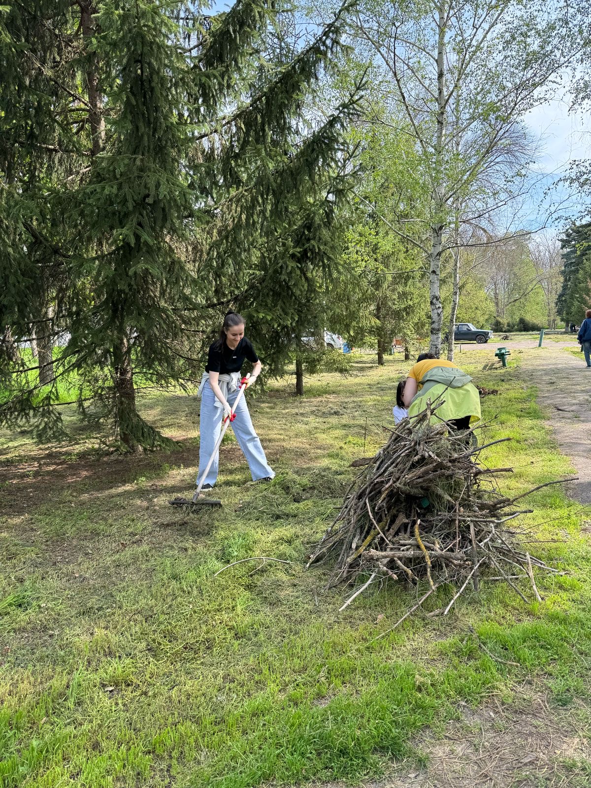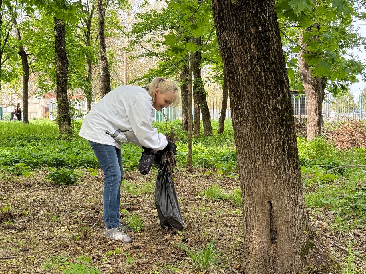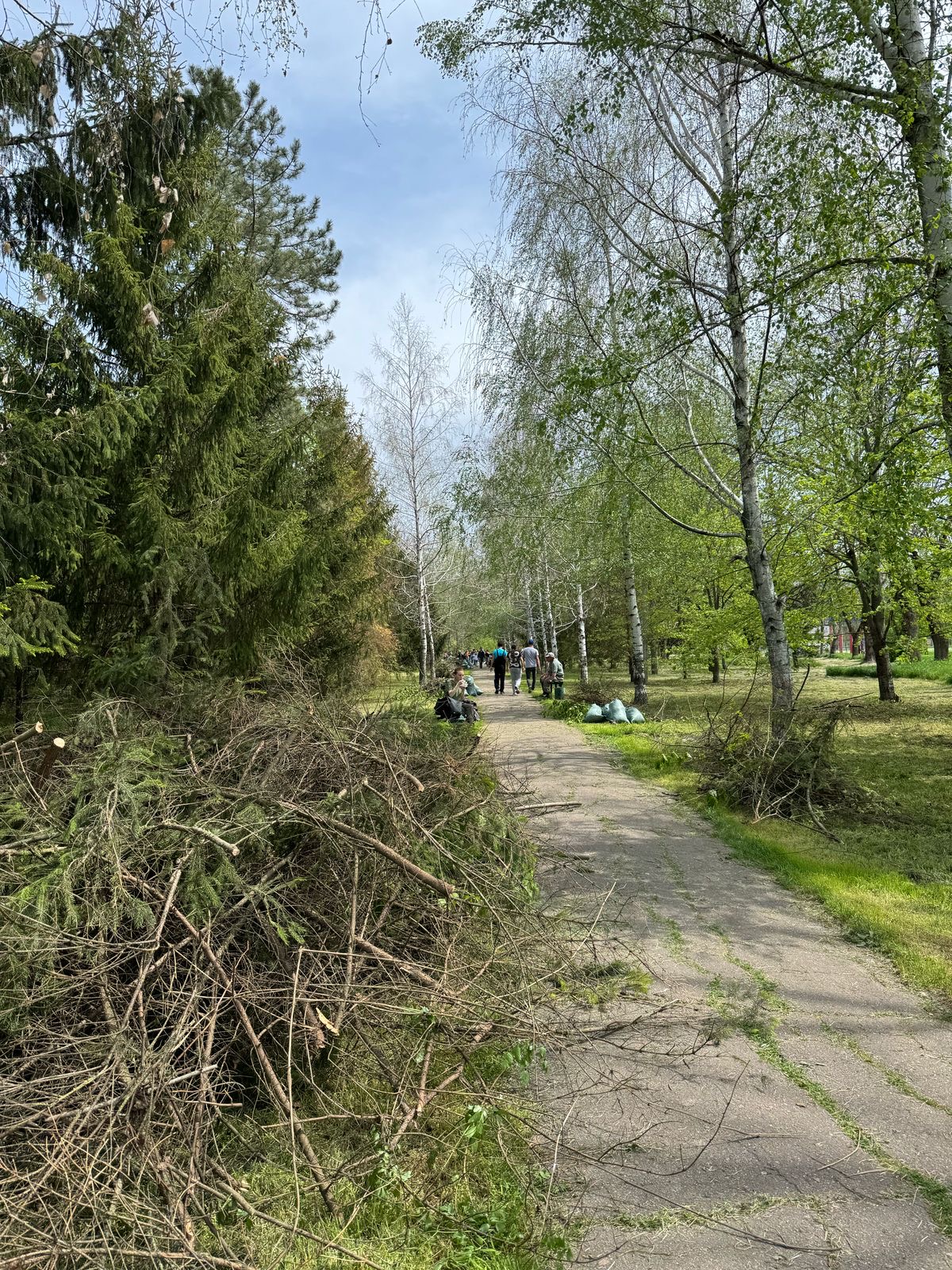 Все вместе приводили территорию парка в порядок: собирали мусор, старые ветви деревьев, обрезали поросль, сгребали прошлогоднюю листву и траву.