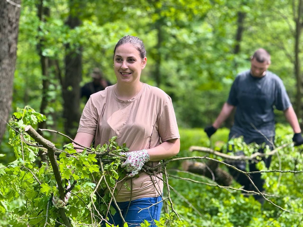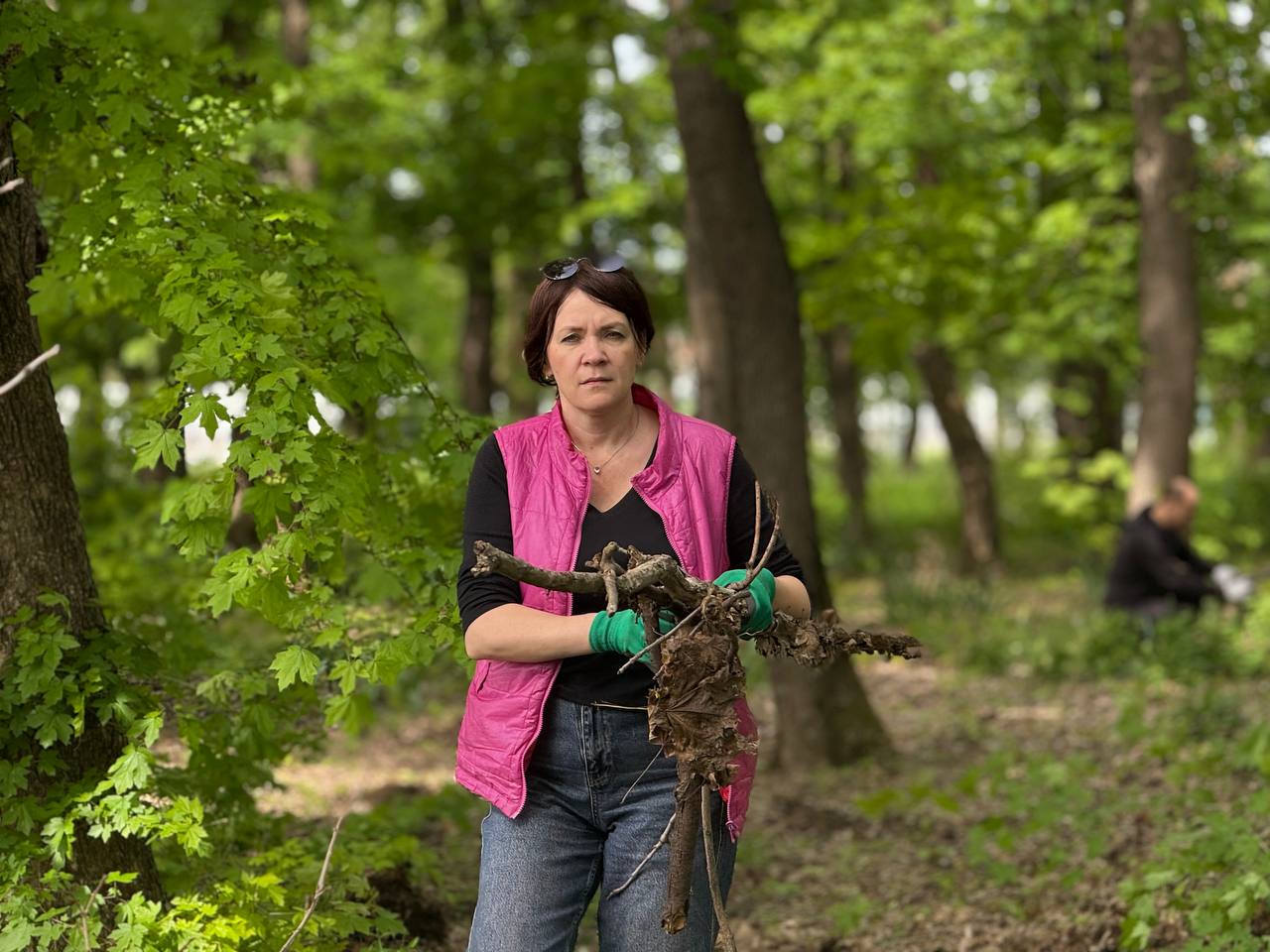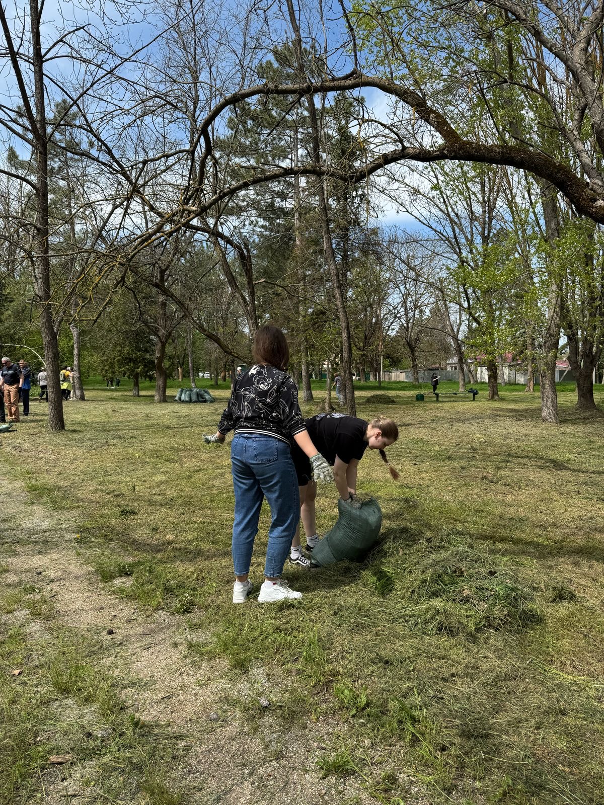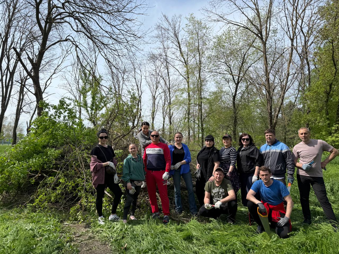 Все вместе приводили территорию парка в порядок: собирали мусор, старые ветви деревьев, обрезали поросль, сгребали прошлогоднюю листву и траву.
