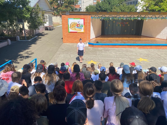 Сотрудники Госавтоинспекции Ейского района провели профилактическое мероприятие «Летом отдыхаем, но ПДД не забываем!» в Детском Оздоровительном Центре «Ейск»