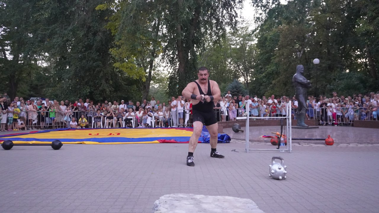 Открыл фестиваль семикратный чемпион России, призер международных турниров по гиревому спорту, двукратный рекордсмен книги рекордов России Богдан Дрожжин.