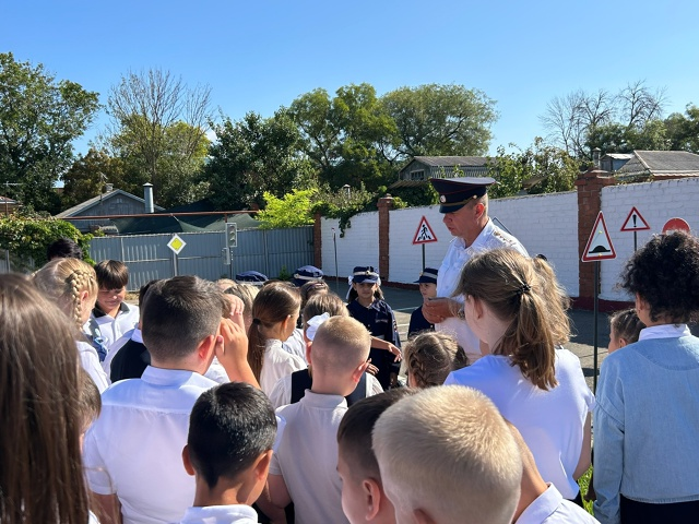 Командир взвода ДПС Максим Игоревич Грищенко вместе с юными участниками дорожного движения провели разъяснительную работу со школьниками, ребята узнали о важности безопасного поведения на дороге и о том, как правильно переходить улицу.