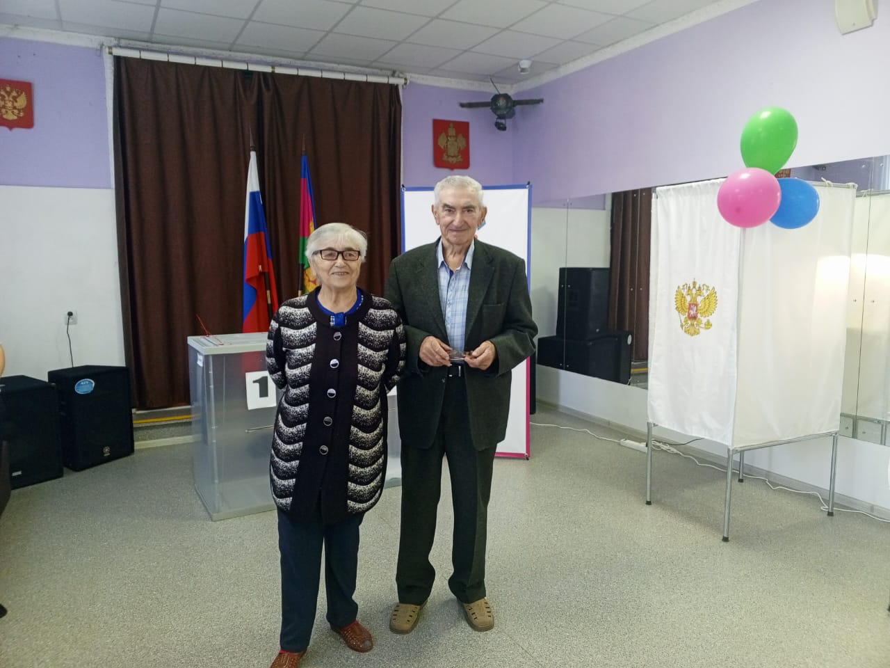 Одними из первых на избирательный участок № 13-10 посёлка Советский голосовать пришла супружеская пара Калиниченко - Анатолий Алексеевич и Валентина Николаевна. В этом году пара отметила свой «изумрудный юбилей» - 55 лет совместной жизни. Супруги - старейшие жители поселка Советский. Они участвовали в развитии сельскохозяйственного предприятия "Советское" почти со дня его основания.