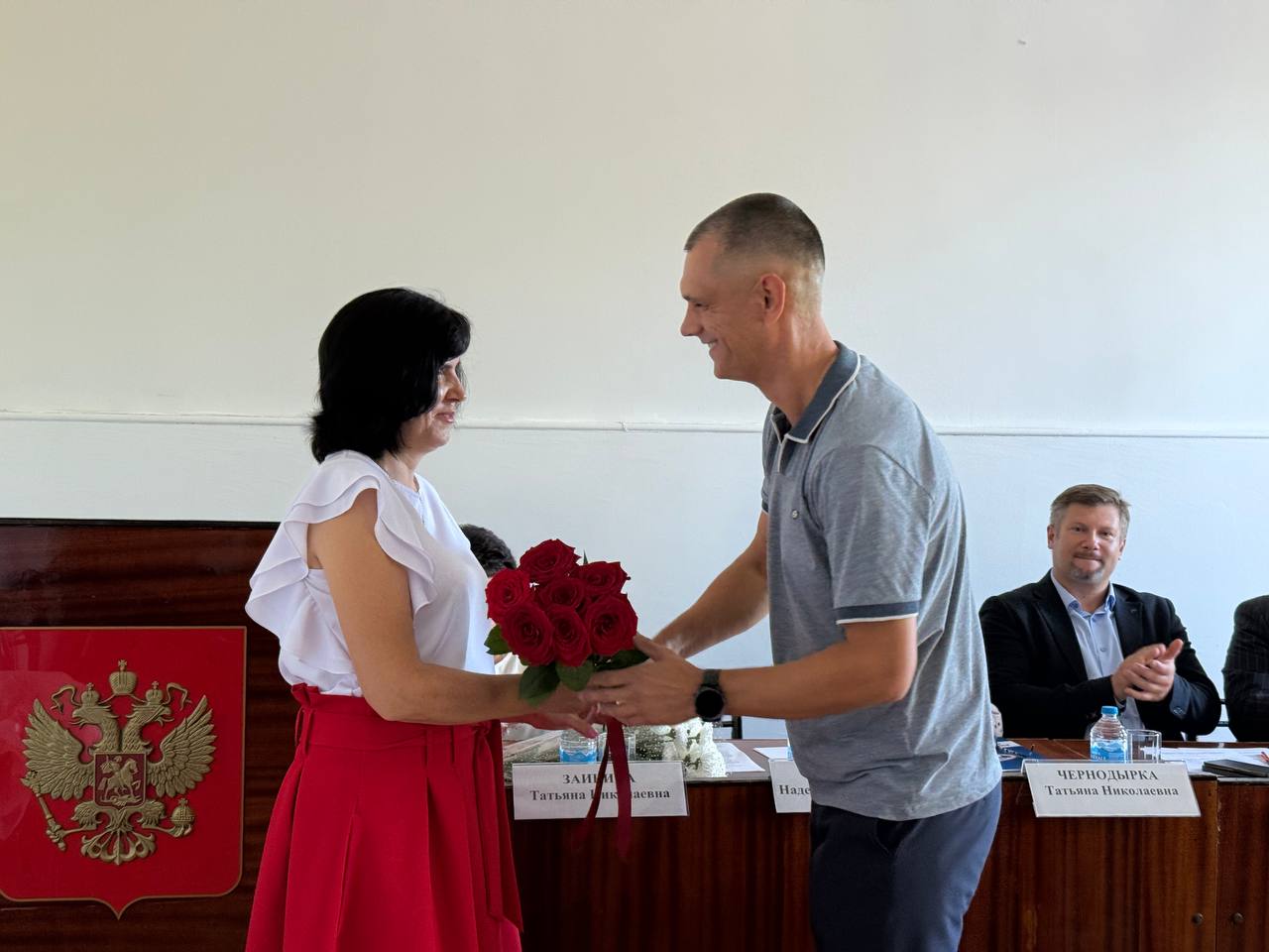 Гости мероприятия, депутаты поселения и жители тепло приветствовали и поздравили Надежду Владимировну с вступлением в новую должность.