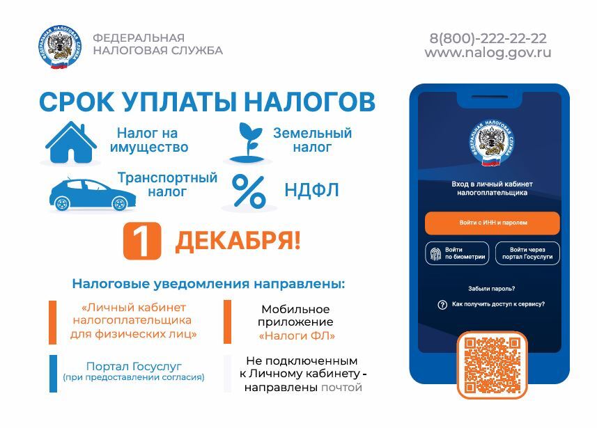 Уплатить имущественные налоги необходимо в срок не позднее 1 декабря