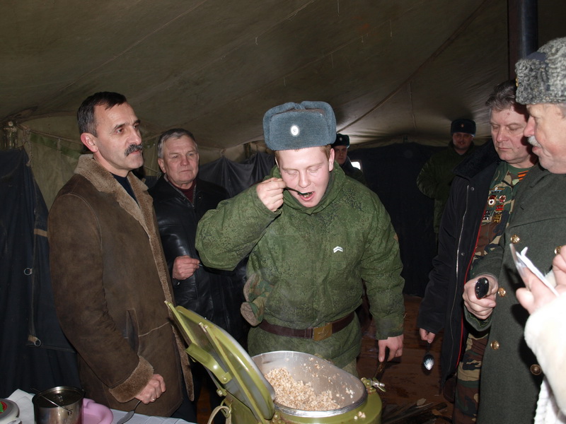 Старт соревнованиям дал торжественный подъем флагов России и военно-патриотической игры, правила которой капитаны команд получили под грифом «Совершенно секретно». Чтобы дойти до победы ребятам предстояло выдержать 10 испытаний – например, быстрее других разобрать-собрать автомат, победить в конкурсах лыжников, стрелков и медсестер. Первыми же держали экзамен кашевары. Конкурс солдатской каши оценивало компетентное жюри во главе с Михаилом Тимофеевым. Сразу назвать победителя не удалось, по мнению «дегустаторов» хороши были все номинанты. Пришлось вызывать независимого эксперта – военнослужащего срочной службы. Он-то и определил лучших поваров. Ими оказались ребята из колледжа «Ейский».