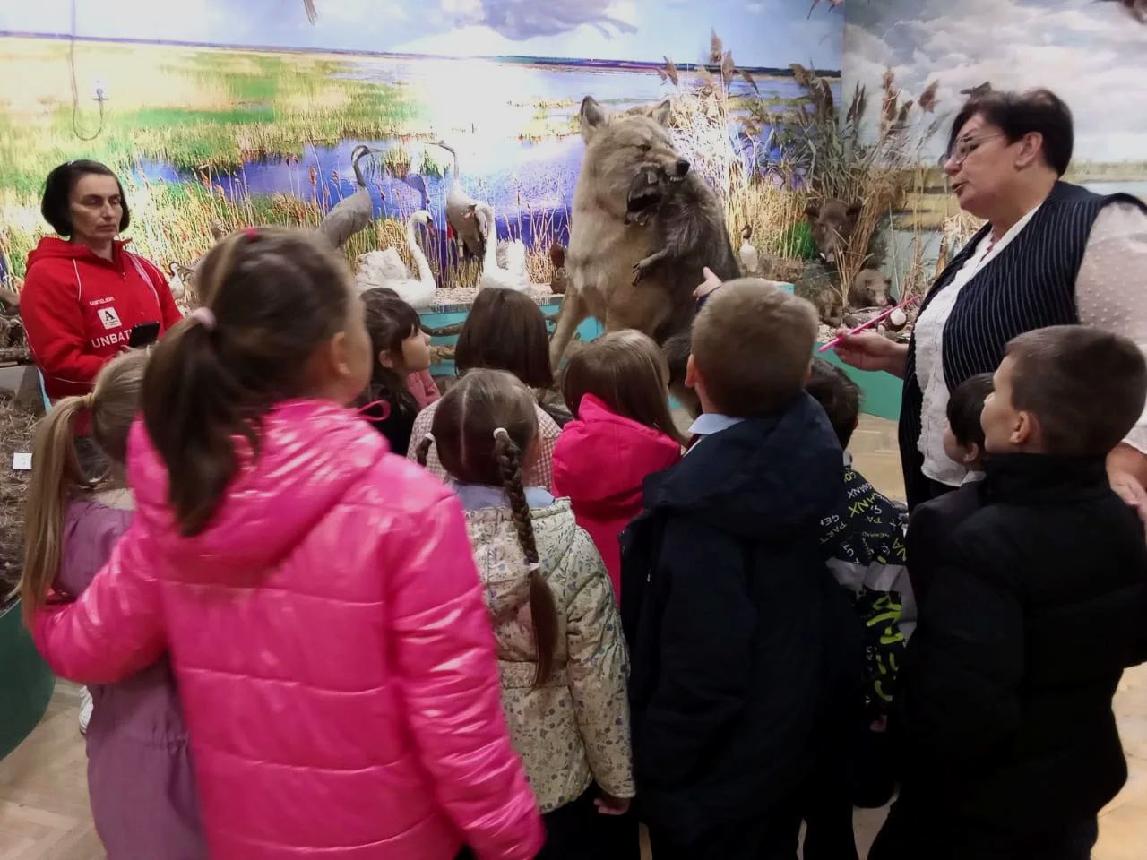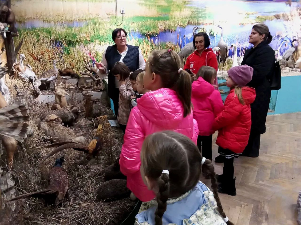 ???? На экспозиции «Животные и птицы степей и плавней» юные посетители с любопытством рассматривали экспонаты, представляющие пресноводных рыб, птиц и животных местности.