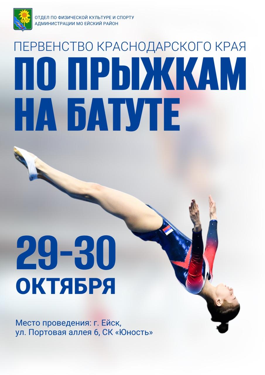 С 29 по 30 октября в Ейске будут проходить соревнования Первенства Краснодарского края по прыжкам на батуте среди юношей и девушек