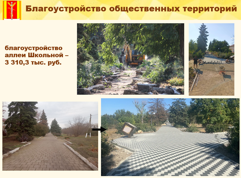 В пос. Комсомольце благоустроена аллея Школьная: уложена новая тротуарная плитка, установлено 8 уличных фонарей, отремонтирована фигура В.И. Ленина.