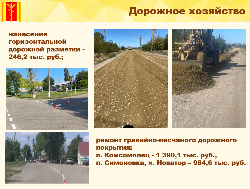 Произведено грейдирование автомобильных дорог по пер. Школьному, ул. Новой Садовой, ул. Вольной, ул. Юбилейной, а также ремонт гравийно-песчаного дорожного покрытия в п. Симоновка и х. Новаторе.