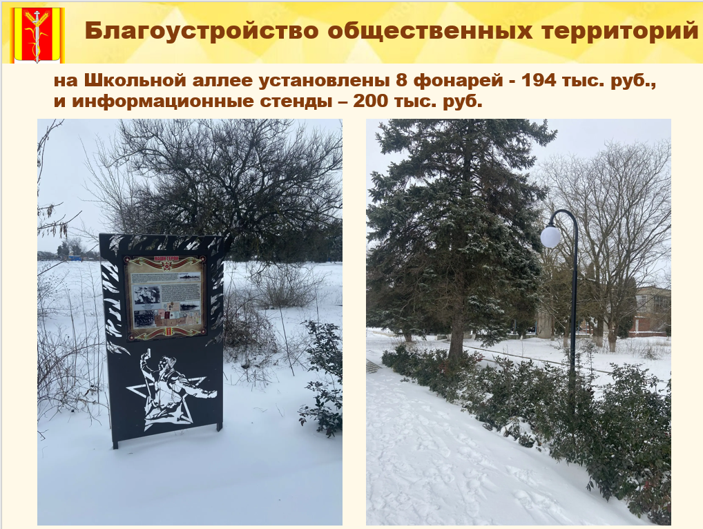 Проведено техническое обслуживание линии уличного освещения в п. Комсомольце и х. Новаторе, обустроена новая линия уличного освещения по ул. Солнечной. Всего сумма затрат составила 2,3 млн руб.
