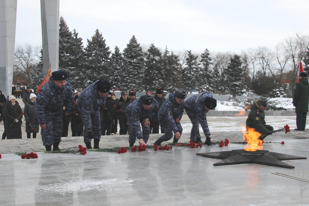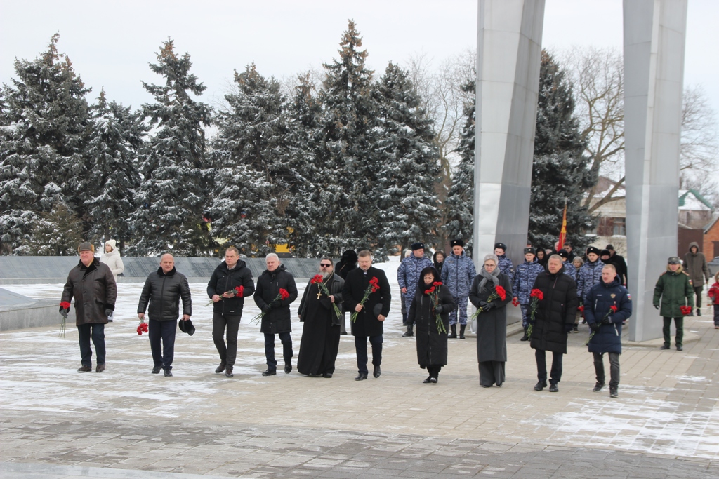 Вместе с руководителем муниципалитета первыми к Вечному огню цветы возложили депутат ЗСК Сергей Белан, председатель Совета МО Ейский район Олег Вяткин, заместитель главы города Александр Бурнаев, председатель Совета Ейского городского поселения Юрий Лукьянченко, представители Ейского гарнизона, правоохранительных органов и силовых структур, епархии.
