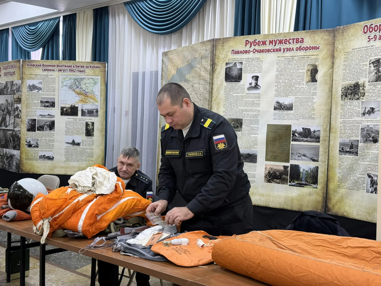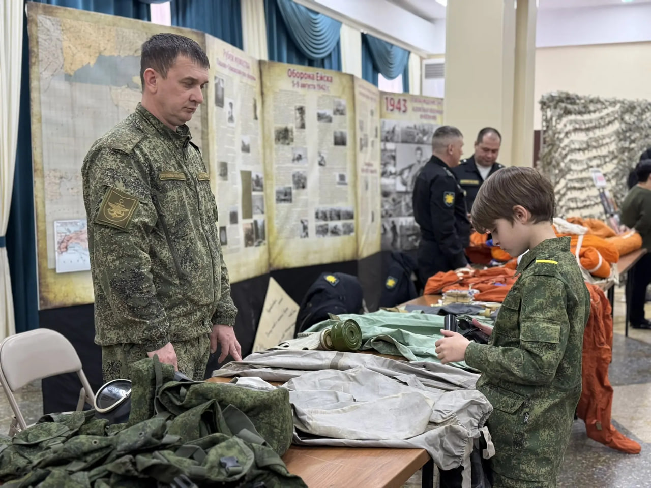 В рамках мероприятия в фойе была организована выставка, где присутствующие смогли ознакомиться с макетами оружия, попробовать себя в сборке автомата и увидеть военную атрибутику.
