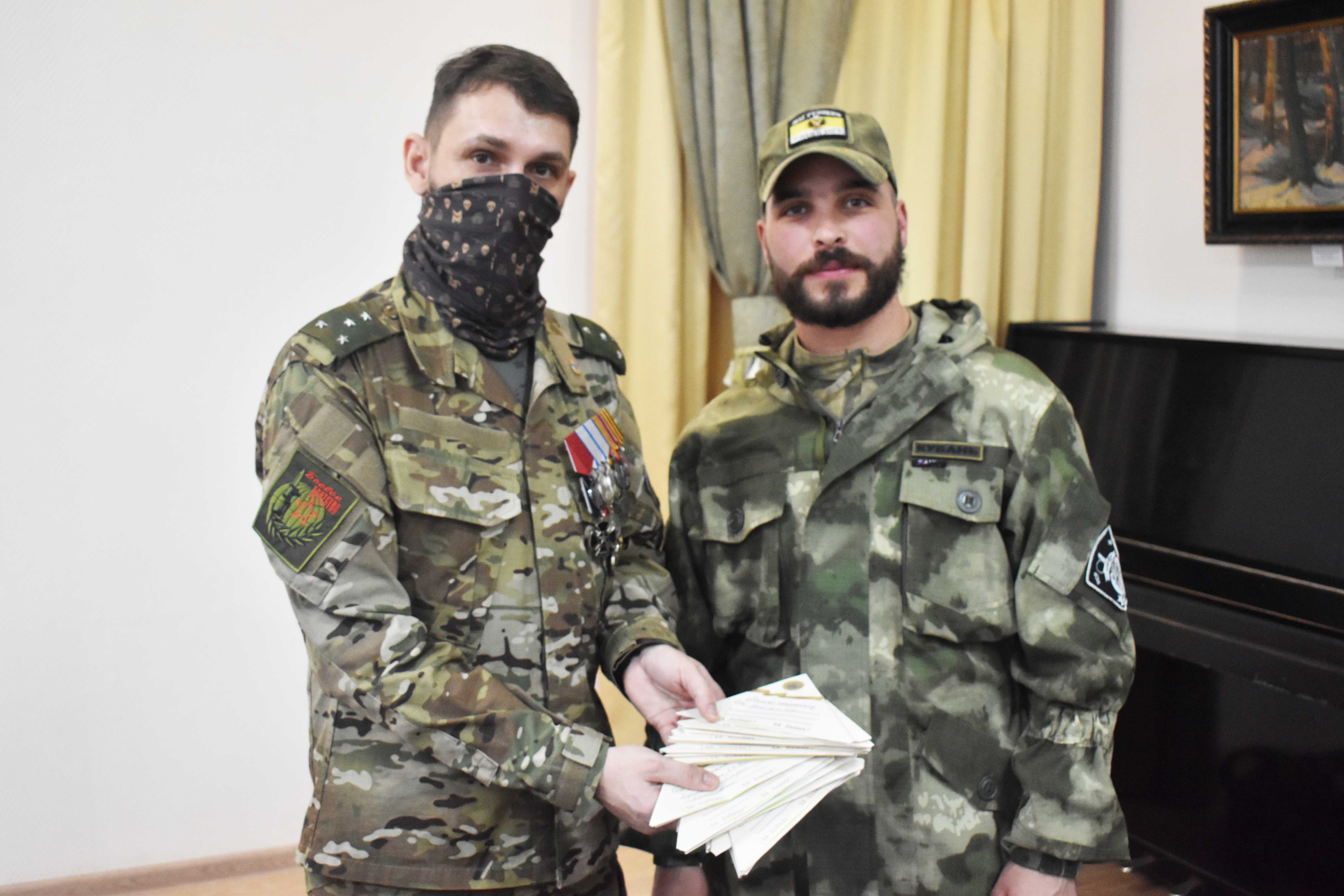 Среди присутствующих были руководитель военно-патриотического клуба «Выстрел» и Союза казачьей молодежи Кубани Максим Александрович Шматко, а также военнослужащие с позывными «Сапёр», «Лётный» и «Кубань».