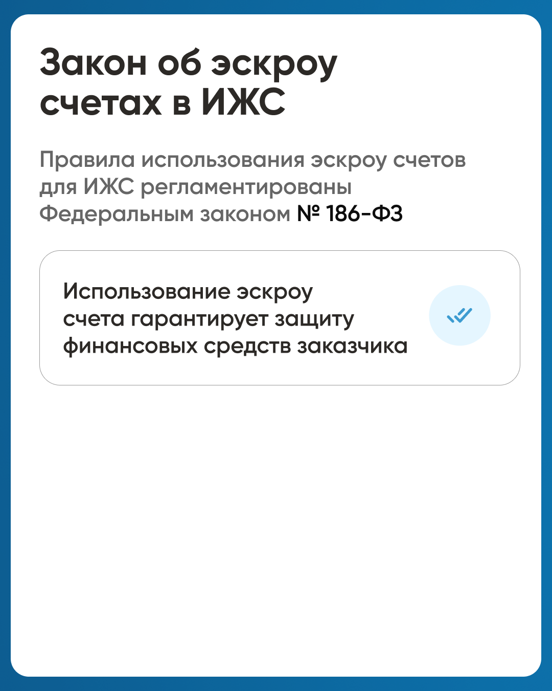 Эскроу-счёт в ИЖС — это специальный счёт в банке, на котором размещаются денежные средства заказчика до момента окончания строительства.