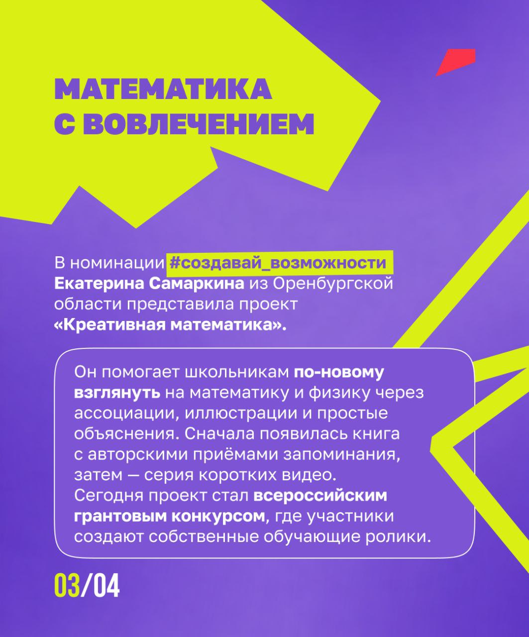 Мечтайте, верьте в себя и свою идею — как это делали победители прошлого сезона. Национальные проекты России делятся их вдохновляющими историями в карточках.