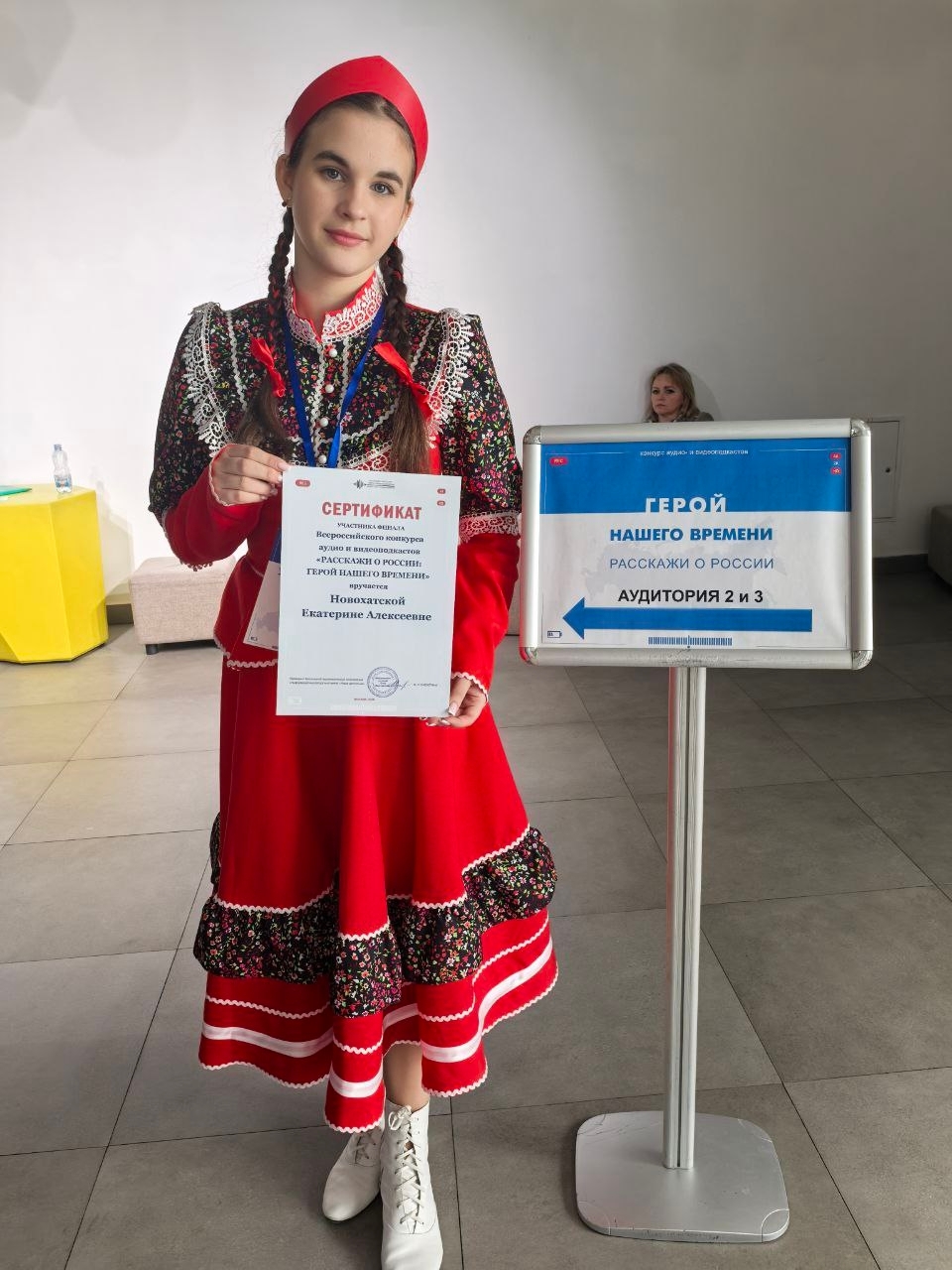Ученица школы № 5 имени Героя Советского Союза П.А. Михайличенко Екатерина Новохатская достойно представила Краснодарский край и Ейский район на федеральном уровне, став лучшей в номинации «Видеоподкаст: Малая Родина».