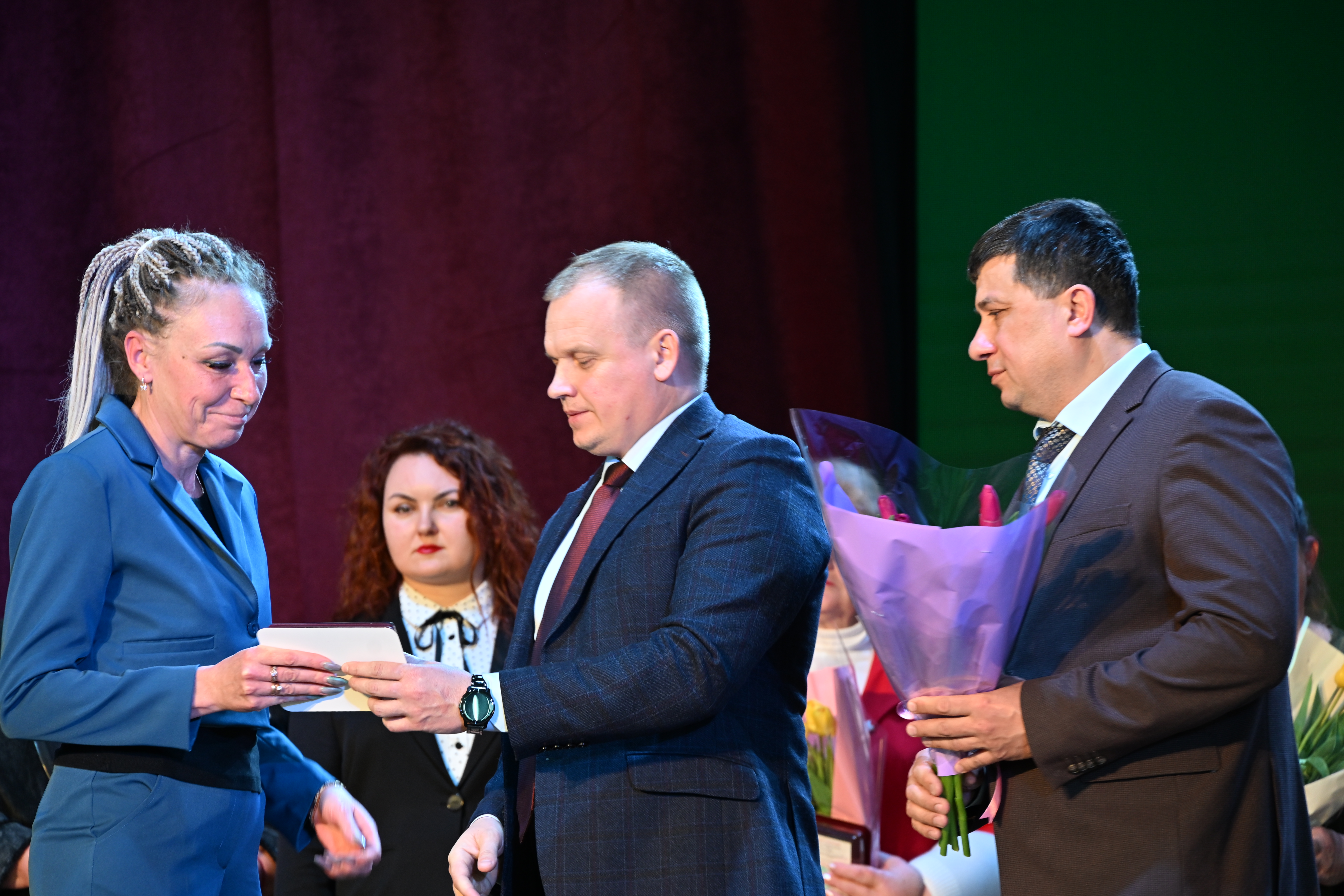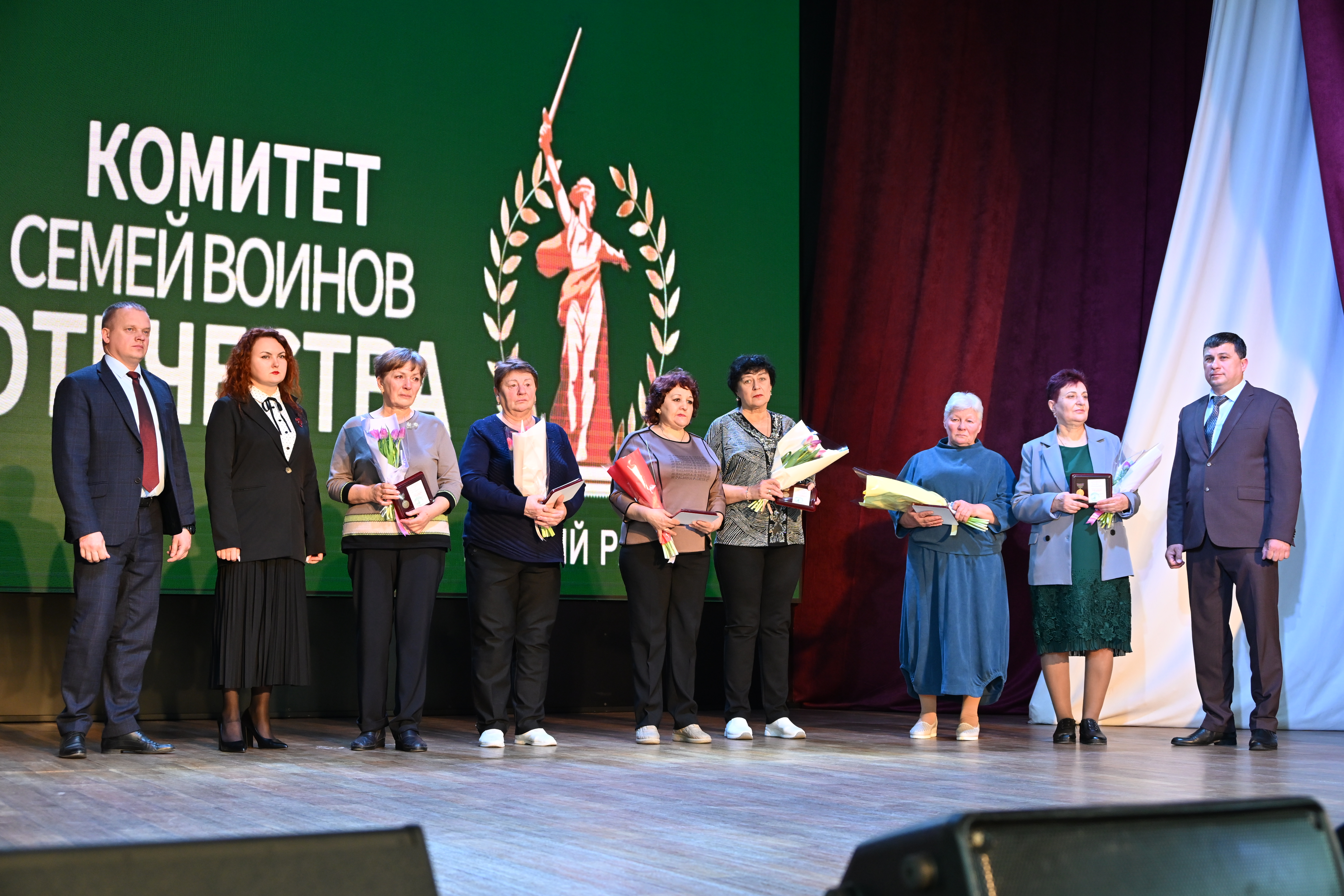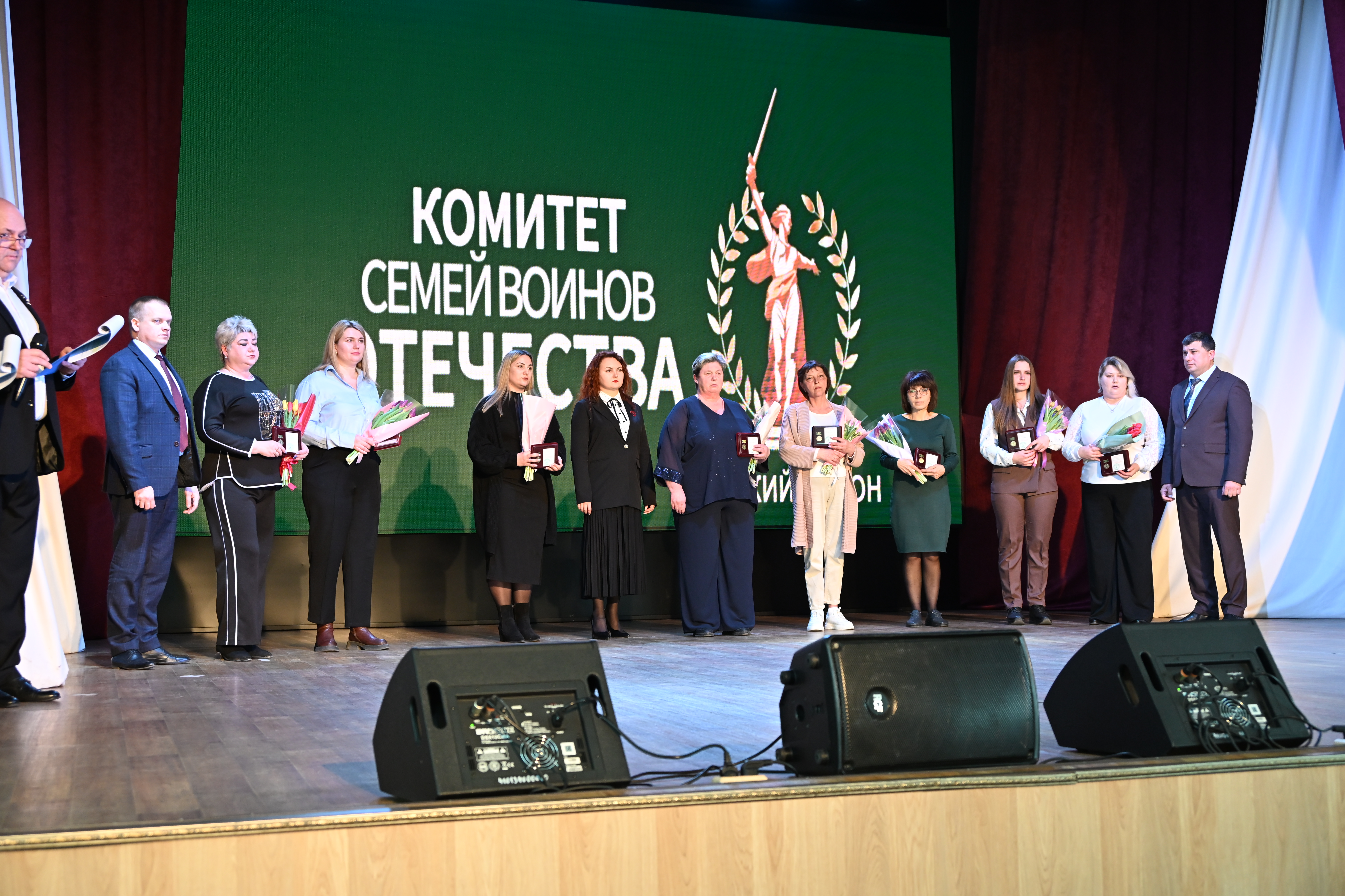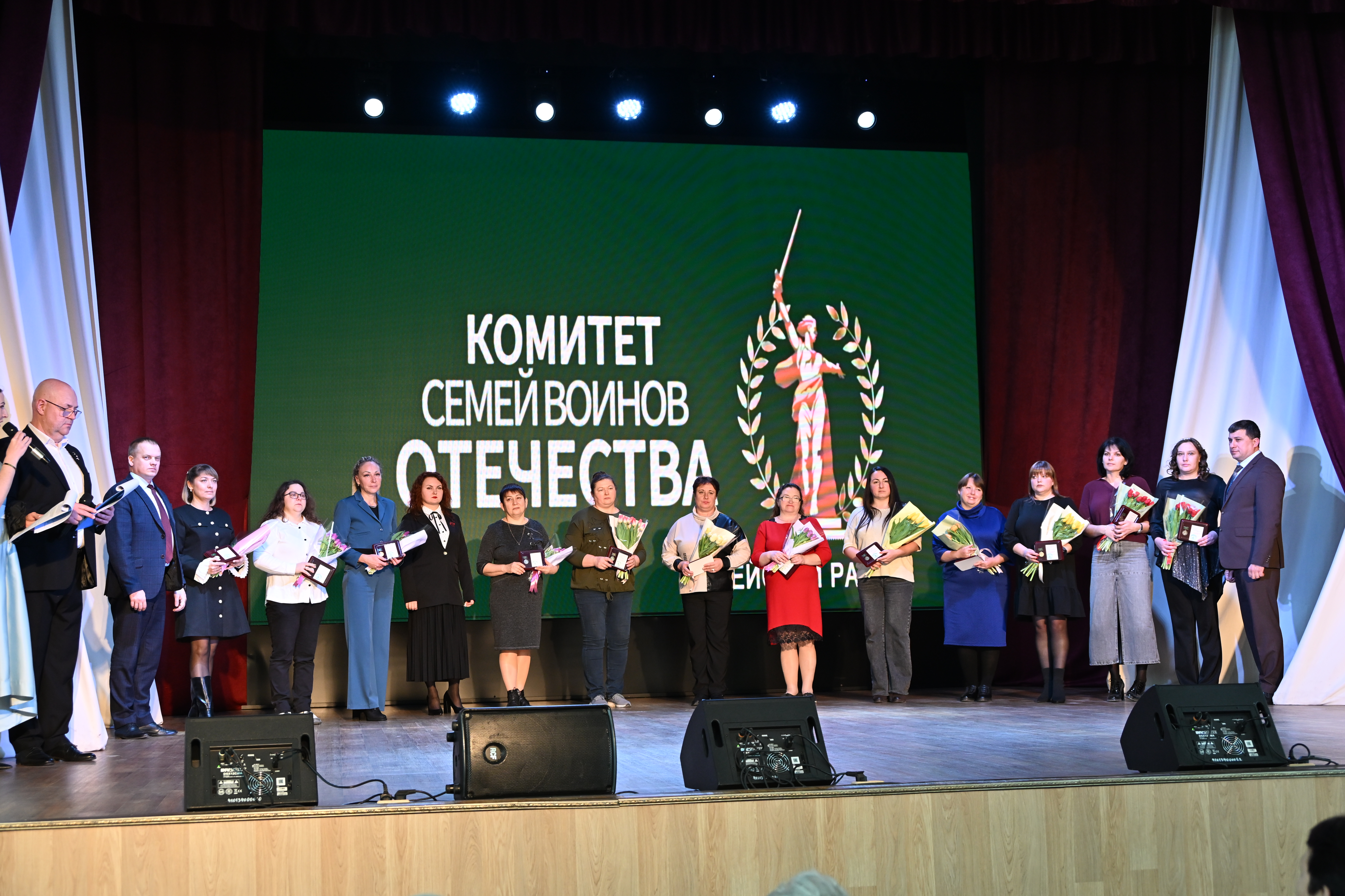 Трогательной частью церемонии стало вручение памятных медалей от имени руководителя Комитета семей воинов Отечества Краснодарского края Светланы Недилько. Каждая мать и жена, приглашенная на сцену, принимала награду под аплодисменты зала, ощущая поддержку и уважение каждого присутствующего.