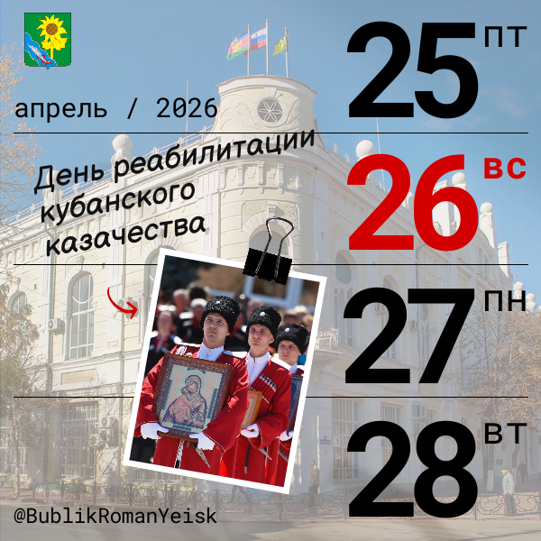 Уважаемые казаки! Жители Ейского района! От всей души поздравляю вас с Днем реабилитации кубанского казачества!