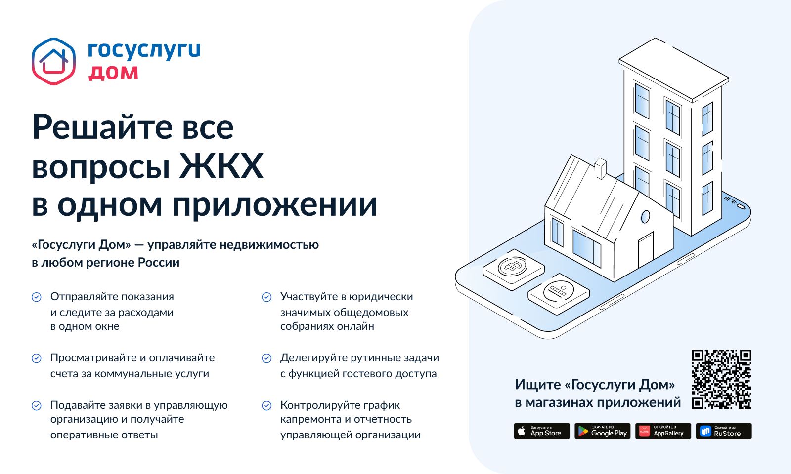 Решайте все вопросы ЖКХ в одном приложении. "Госуслуги Дом" - управляйте недвижимостью в любом регионе России.