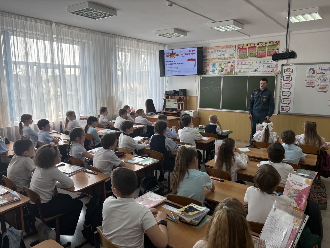 Сотрудниками ОНД и ПР Ейского района МЧС России по Краснодарскому краю проведен урок мужества с учащимися МБОУ гимназии №14 им. Ю. А. Гагарина