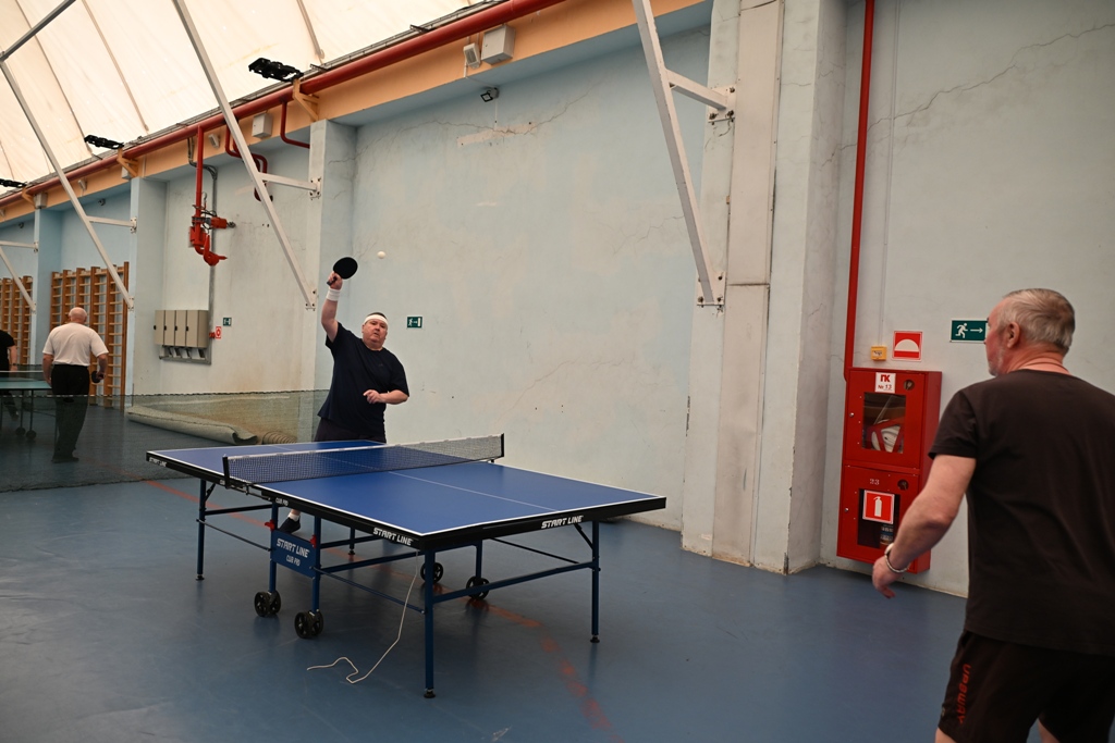- В спорткомплекс «Солнечный» мы пришли в самый разгар тренировок по настольному теннису. Инструктор Элтун Каримов помогал ейчанам отточить свое мастерство в владении ракеткой и маленьким мячом. Игры велись сразу на 4 теннисных столах. А чуть дальше инструктор Надежда Давыдова проводила оздоровительную гимнастику для женщин.