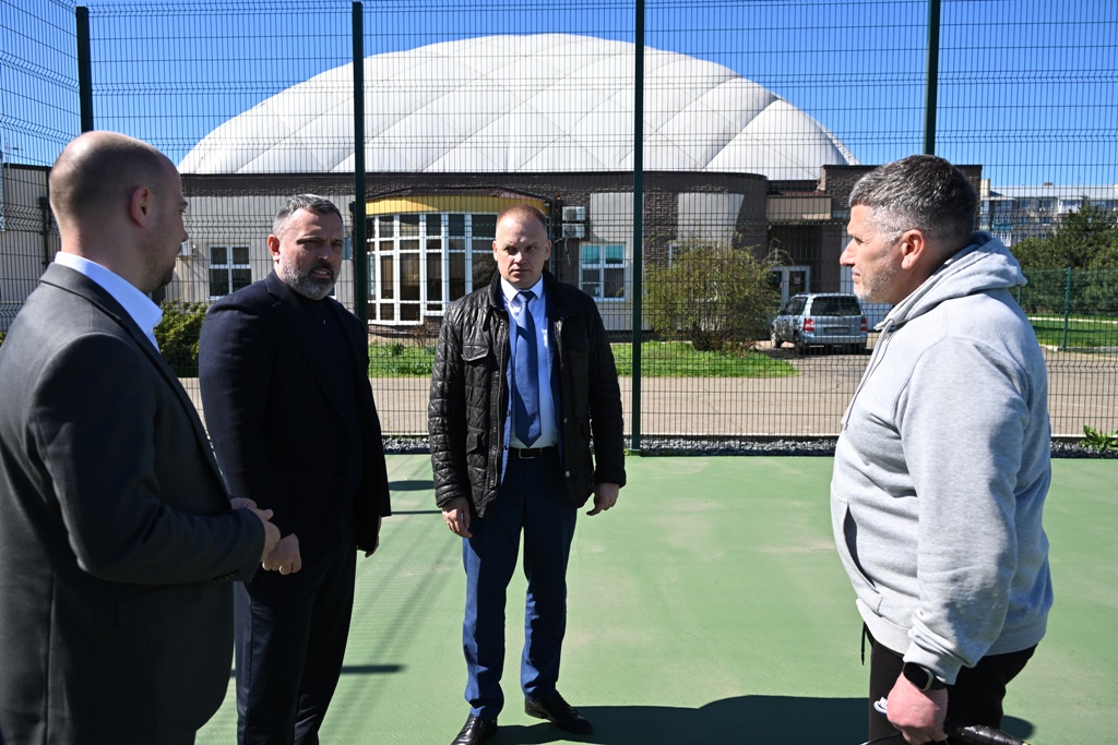 Руководитель муниципалитета Роман Бублик вместе с депутатом Госдумы Дмитрием Лоцмановым посетил спортивные объекты Ейского района