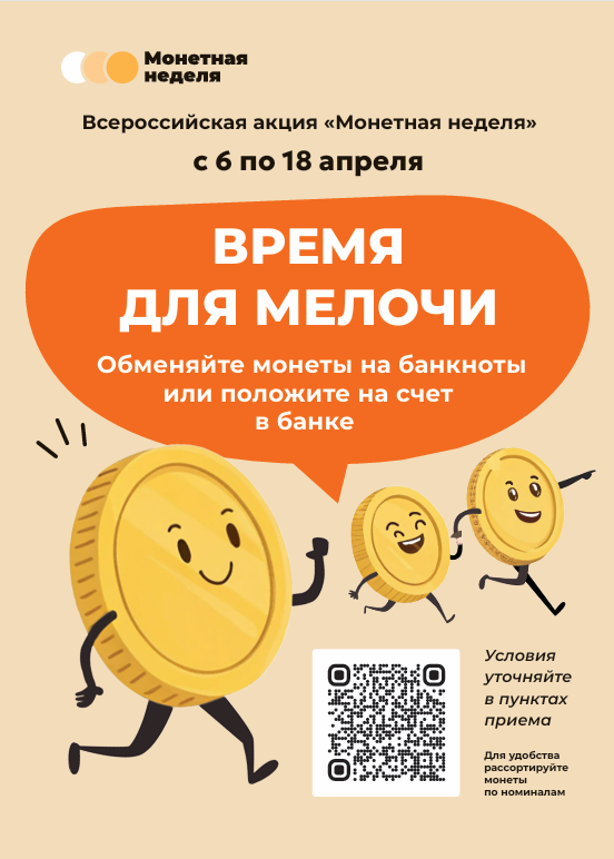 С 6 по 18 апреля 2026 года проводится Всероссийская акция «Монетная неделя», направленная на возврат монеты в обращение