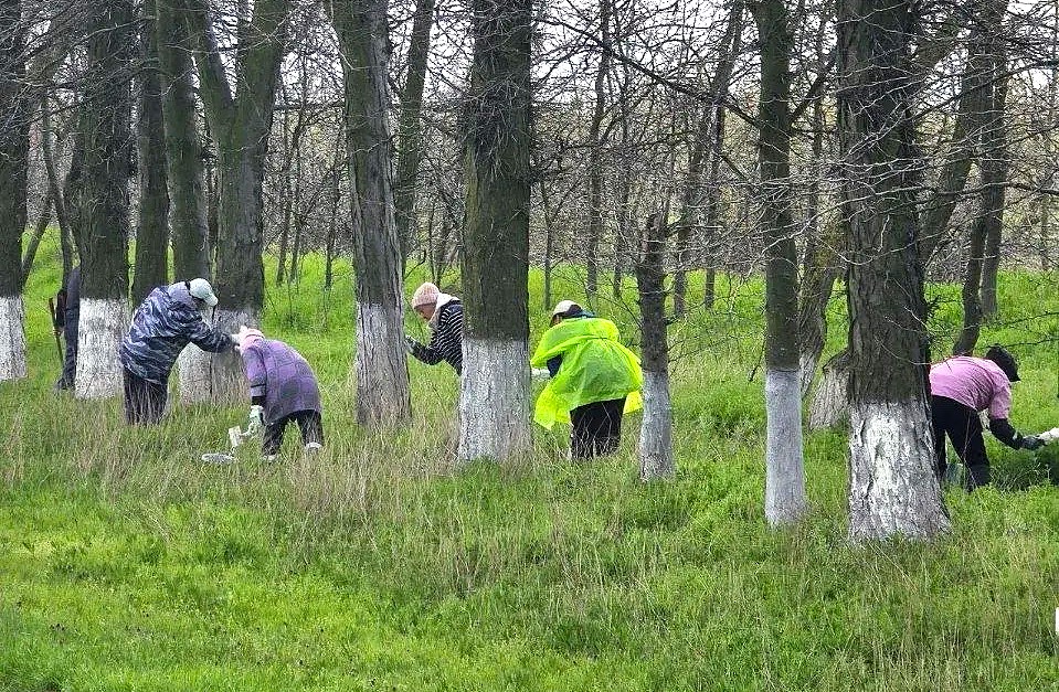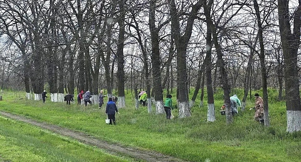 К наведению санитарного порядка в Ейске и Ейском районе присоединяются трудовые коллективы муниципалитета. В сезон весенних полевых работ сотрудники ООО «Плодовое» приступили к побелке деревьев в защитной лесополосе. Работа ведётся вдоль трассы на участке от посёлка Зелёная Роща до села Александровка.