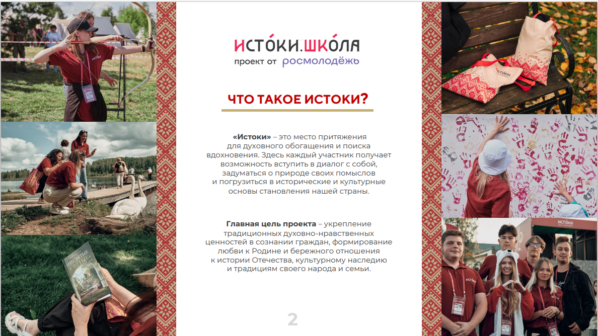 В рамках нацпроекта «Молодежь и дети» Молодежный центр «Российский центр гражданского и патриотического воспитания детей и молодежи» организует Молодежный историко-культурный форум «Истоки». Это уникальная возможность для каждого участника погрузиться в мир русской истории и культуры, укрепить традиционные духовно-нравственные ценности и сформировать бережное отношение к наследию предков.