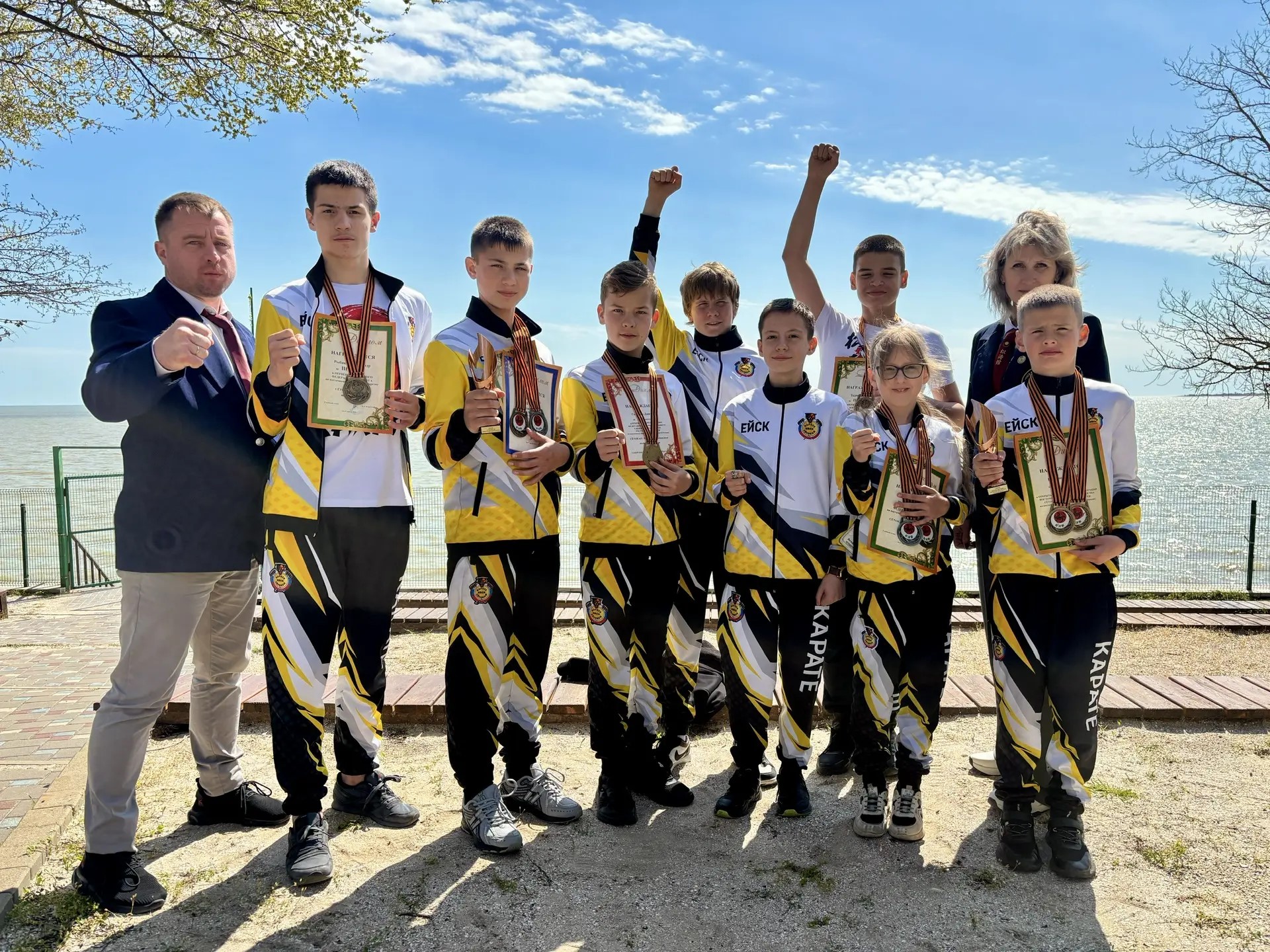 Второе место в командных соревнованиях: Командное кумитэ 14-15 лет: Карнаухов Алексей, Карнаухов Валерий, Борисенко Владимир, Трошанов Тимур.