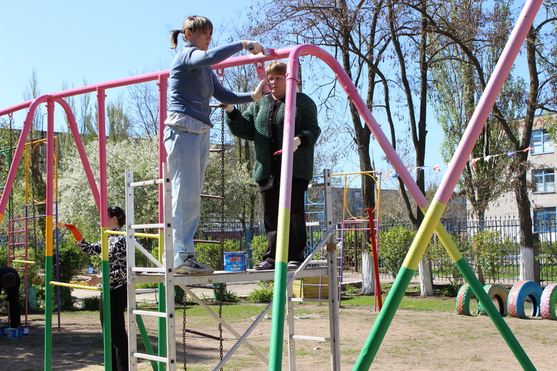 Яркими, обновленными игровыми площадками порадуют малышей детские сады. Сегодня там трудились не только педагоги, но и родители. В детсаде № 34 они, например, общими усилиями высадили порядка 200 петуний и более 50 кустарников, отремонтировали спортивное оборудование, побелили деревья.