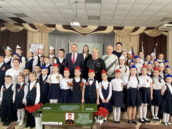 8 апреля в актовом зале гимназии №14 им. Ю.А. Гагарина города Ейска торжественно открыли «Парту героя». На мероприятие присутствовали: депутат Законодательного Собрания Краснодарского края Сергей Белан, заместитель начальника управления образования Ейский район, родители и родственники героев, а также педагоги и ученики.
