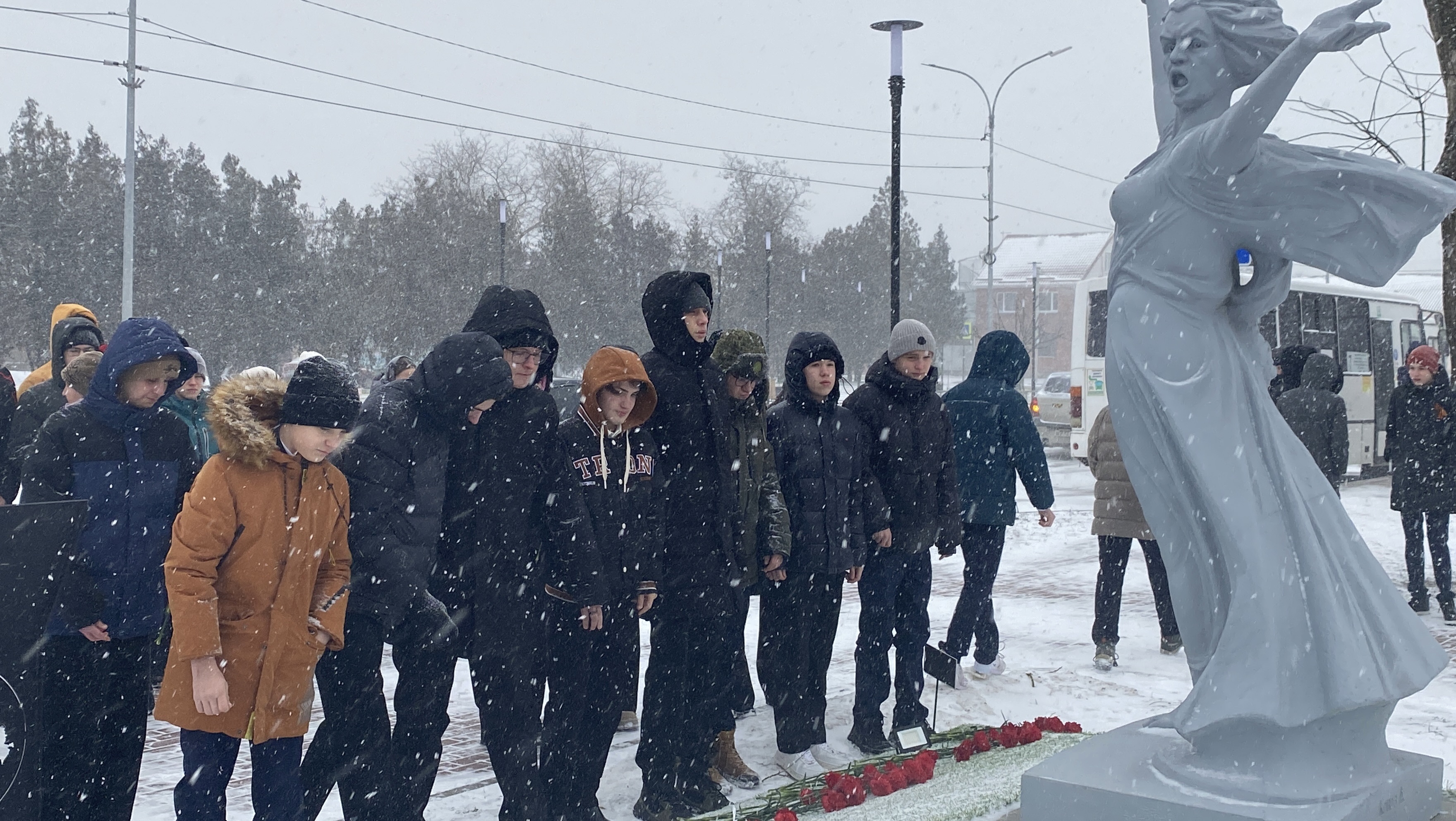 В этот памятный день депутат Законодательного Собрания Краснодарского края Сергей Белан вместе с ребятами из городской школы № 20 - участниками проекта «Хранители истории» Движения «Первых», пришли на Первомайскую площадь к копии монумента «Родина-мать!» в Ейске. Это скульптура - символ не только воинской доблести, но и бесконечной материнской скорби. Склонив головы, участники церемонии возложили алые гвоздики, словно передавая тепло своих сердец тем, кто отдал свои жизни за нашу свободу и мирное небо над головой. В этот момент они ощутили, как история переплетается с настоящим, а подвиги солдат остаются символом героизма и мужества.