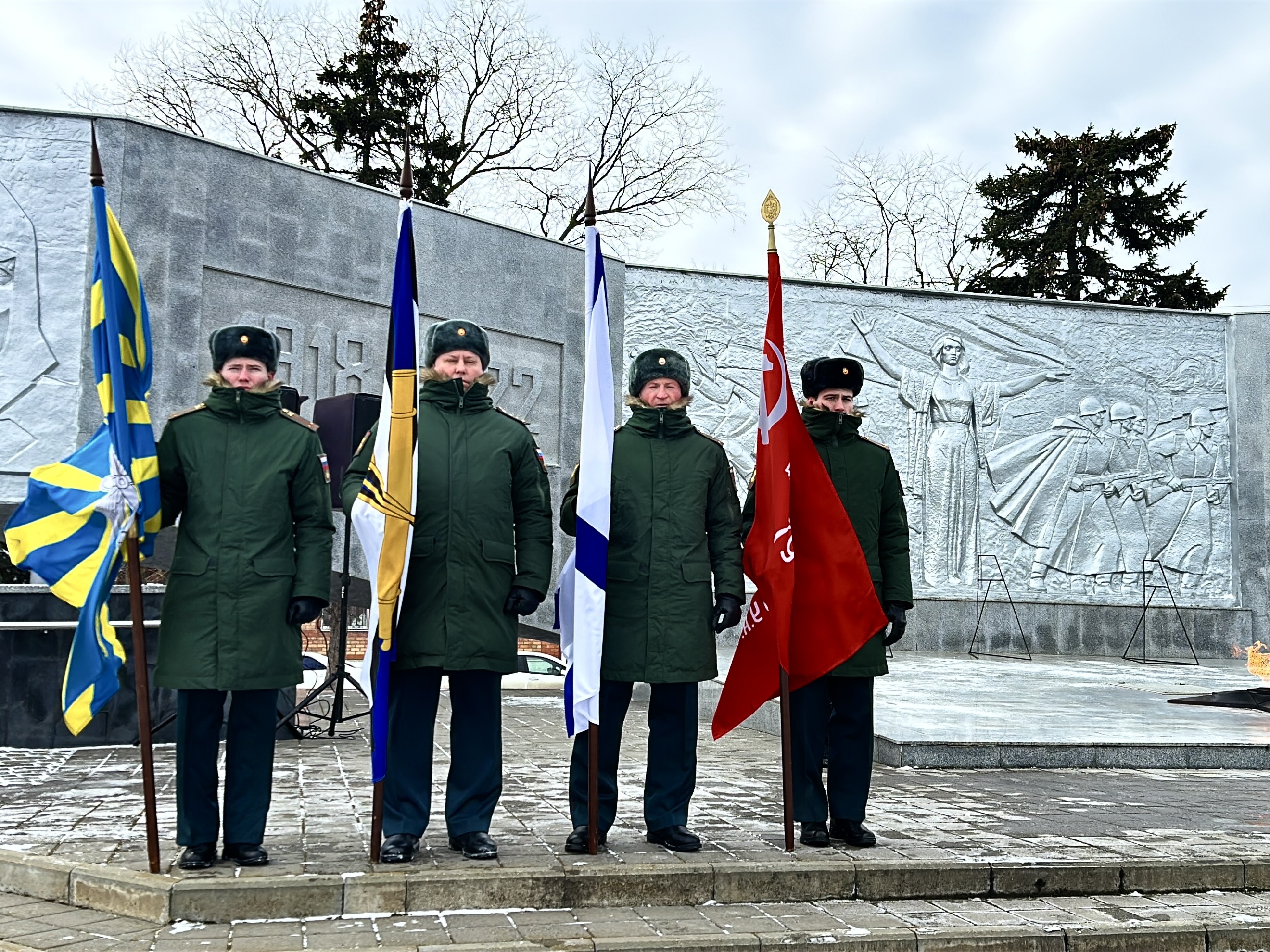 Продолжила цикл памятных мероприятий тематическая концертная программа «Помним! Славим! Гордимся!», прошедшая в городском Дворце культуры. С этим днем со сцены ГДК присутствующих поздравили краевой парламентарий Сергей Белан, заместители глав района и города, представители районного Совета и начальник Ейского местного гарнизона.