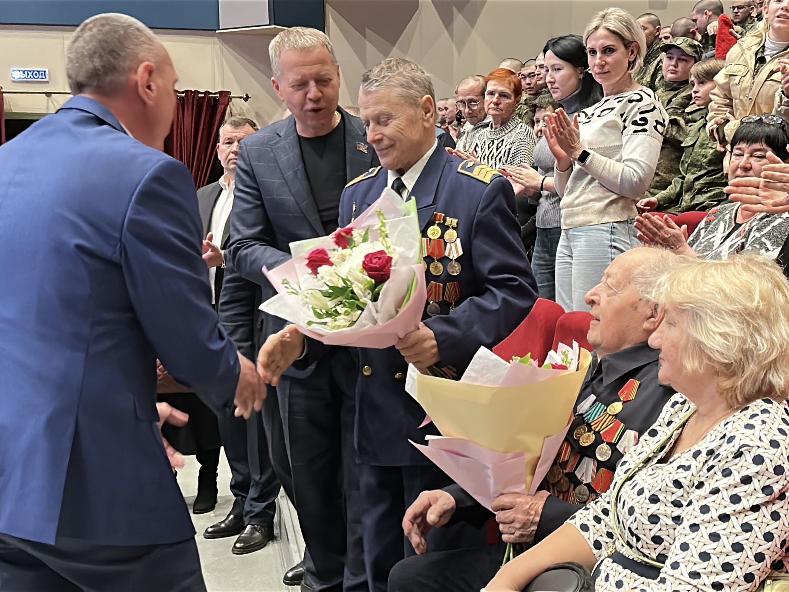 Главными виновниками торжества были ветеран Великой Отечественной войны Михаил Федорович Тимошенский и житель блокадного Ленинграда Юрий Николаевич Миняев. Им вручили цветы – символы уважения и благодарности, которые мы никогда не должны забывать.