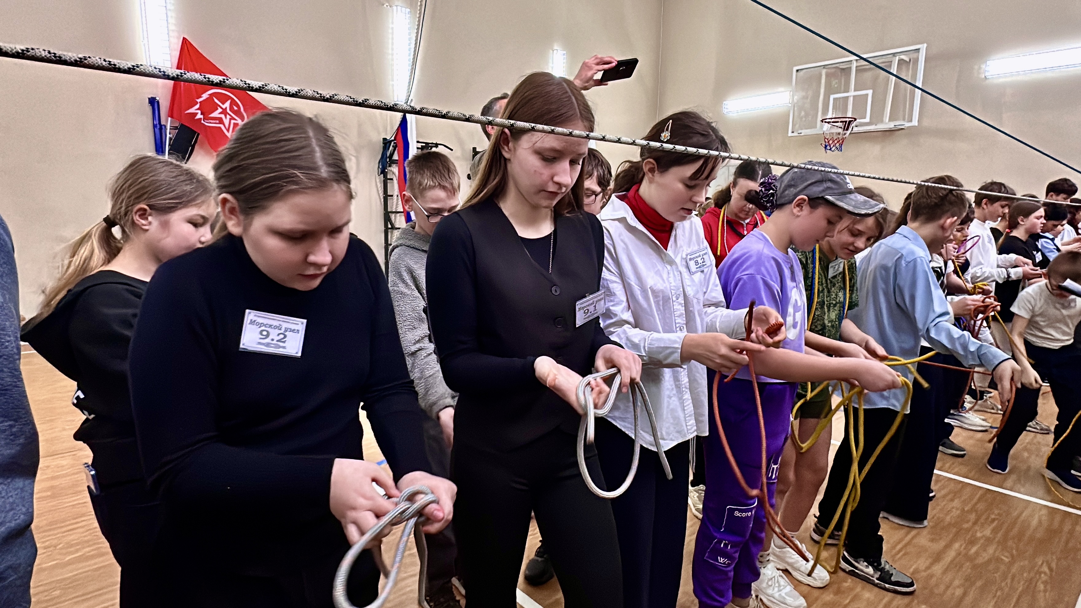 Как только начались соревнования, зал наполнился шорохом верёвок и сосредоточенным молчанием. Каждая из 13 команд должна была продемонстрировать виртуозное владение техникой вязки самых разных морских узлов – от базовых до по‑настоящему сложных. Участникам предстояло завязать прямой и ткацкий, академический и шкотовый, встречный и схватывающий («прусс») узлы, а также карабинную удавку, булинь и другие виды связок – и с этой задачей они блестяще справились.