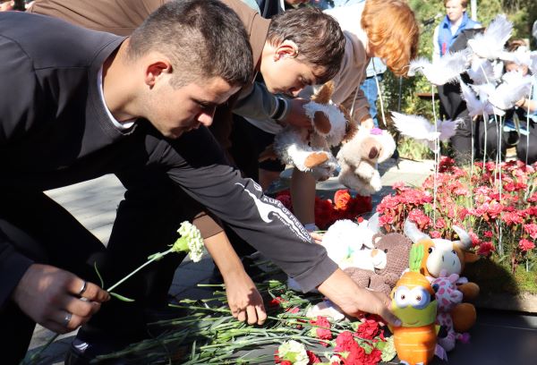 Председатель районного Совета депутатов Олег Вяткин вместе с коллегами, руководителями администраций, силовых и ведомственных структур, представителями общественных ветеранских организаций, воспитанниками Ейского кадетского казачьего корпуса, юнармейцами, студентами ЕПК и ЕМРПТ, учащимися школы-интерната № 2 г. Ейска еще раз вспомнили события этих страшных дней войны, почтили минутой молчания детей, возложили цветы и игрушки к подножью мемориала.