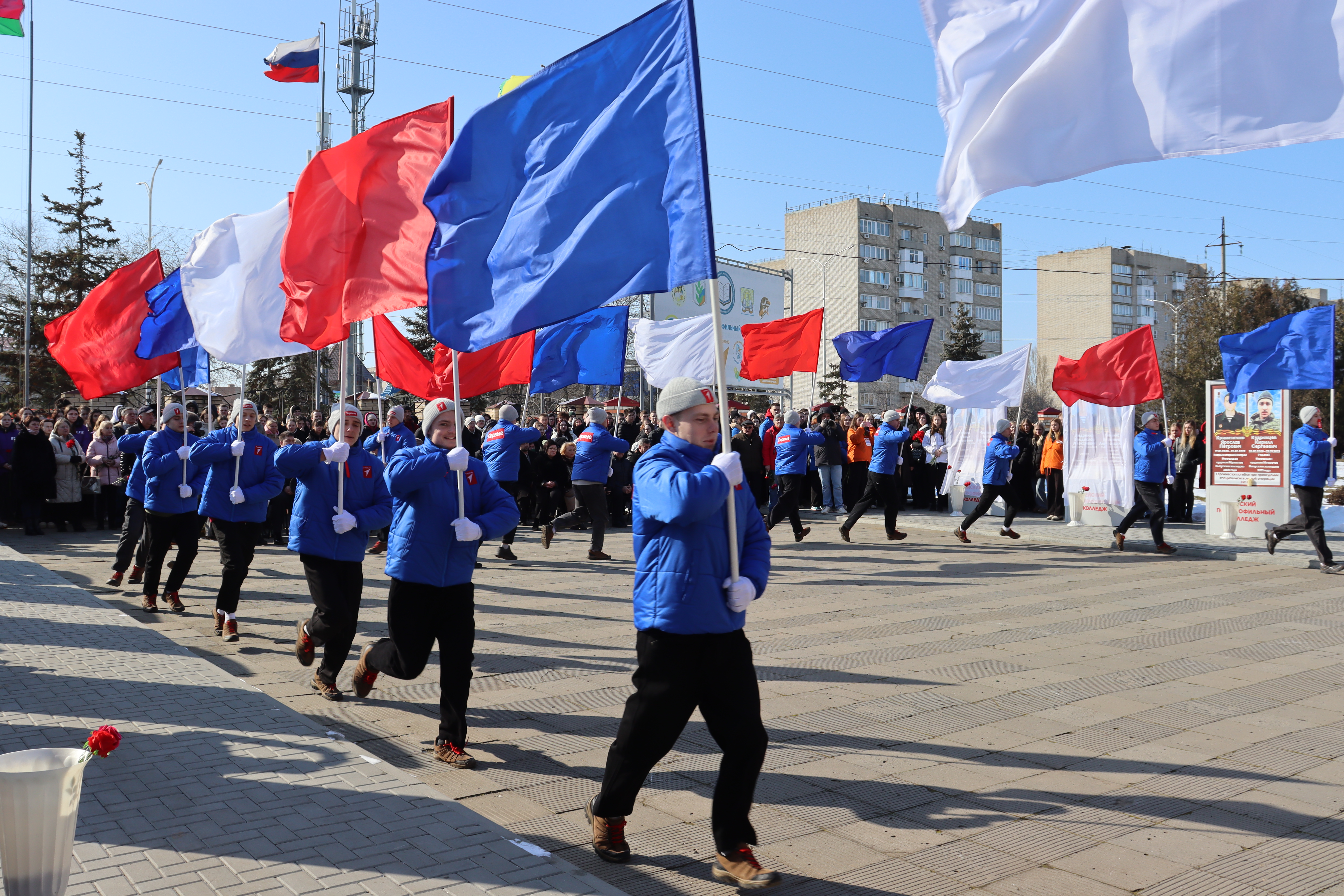 Почетное право первыми снять белое полотно с пилона вместе с Еленой Сидоренко предоставили председателю Совета муниципального образования Ейский район Олегу Вяткину.