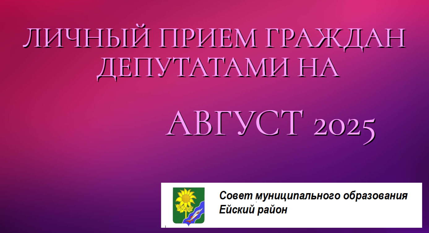 График приема граждан депутатами Совета муниципального образования Ейский район на август 2025 г