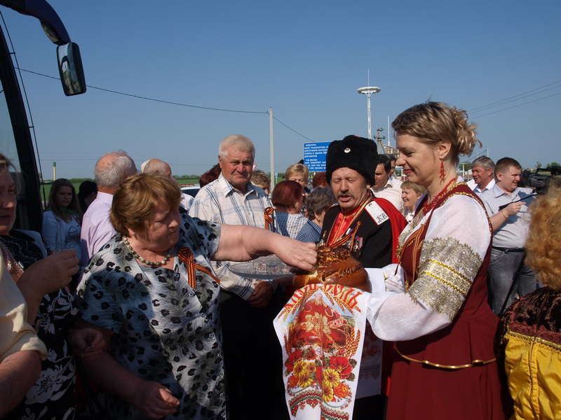 Первую остановку на Ейской земле гости сделали в районе хутора Зеленая роща. Здесь их встречали хлебом-солью и кубанскими песнями, слова которых тут же подхватывали десятки голосов. Как потом говорили ветераны, они сразу почувствовали, что приехали к друзьям – гостеприимным и радушным. После фотографии на память, делегация в сопровождении руководителей города и района двинулась дальше.
