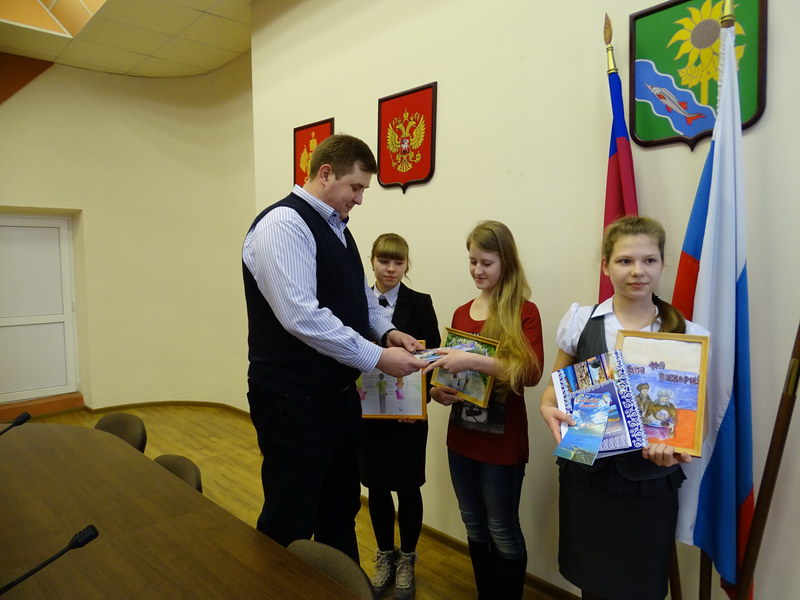 По итогам конкурса председатель ТИК Ейская городская Меркаленко Илья Анатольевич наградил победителей памятными подарками, предоставленными избирательной комиссией Краснодарского края, территориальной избирательной комиссией Ейская городская, администрацией муниципального образования Ейский район, администрацией Ейского городского поселения Ейского района.