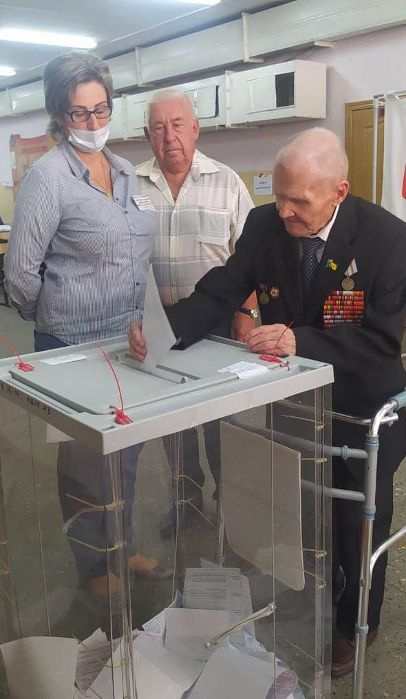 Ветеран, не смотря на свой 98-летний возраст, пришел на избирательный участок лично. Он голосовал на избирательном участке № 14-04, который находится на территории лицея №4 им Е.А.Котенко. Принять участие в выборах - это гражданский долг каждого, так считает фронтовик, участник Великой Отечественной войны.