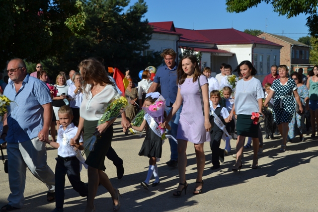 Напутственные слова прозвучали сегодня от директора школы и главы сельского поселения, родителей и гостей торжества. С ответным словом выступила группа малышей - первоклассников, которые подготовили свои выступления. Дети читали стихи о школе, стараясь не забыть слова. Мамы смахивали невольно набежавшие слезы, а папы гордо держали портфели и букеты. Музыкальным подарком подхватили  эстафету старшеклассники  и учителя, после чего в школьном дворе зазвенел первый школьный звонок. Почетное право, дать который предоставили учащемуся 11 класса Богомолову Дмитрию и первокласснице Колесник Вере. День знаний продолжился классными часами и экскурсиями в великую страну Знаний.