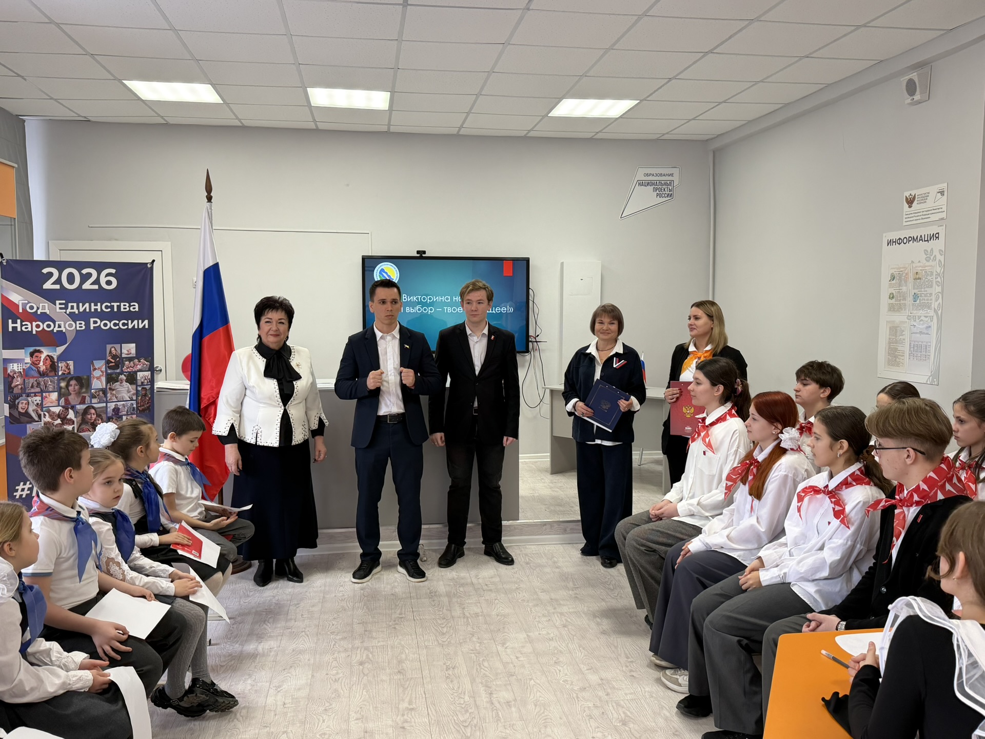 25 февраля 2026 года председатель территориальной избирательной комиссии Ейская районная Татьяна Чернодырка, председатель молодежного общественного Совета при ТИК Ейская районная Кирилл Залыгин, председатель Совета молодых депутатов Владислав Витюк провели в МБОУ СОШ №25 им. трижды Героя Советского Союза А.И.Покрышкина станицы Должанской МО Ейский муниципальный район Краснодарского края викторины, блиц-опрос, беседы с обучающимися 1, 8 и 11 классов. По окончании мероприятий за активное участие и знание отдельных норм избирательного законодательства ребятам вручены сертификаты. Мероприятия продолжатся до 16 марта 2026 года.