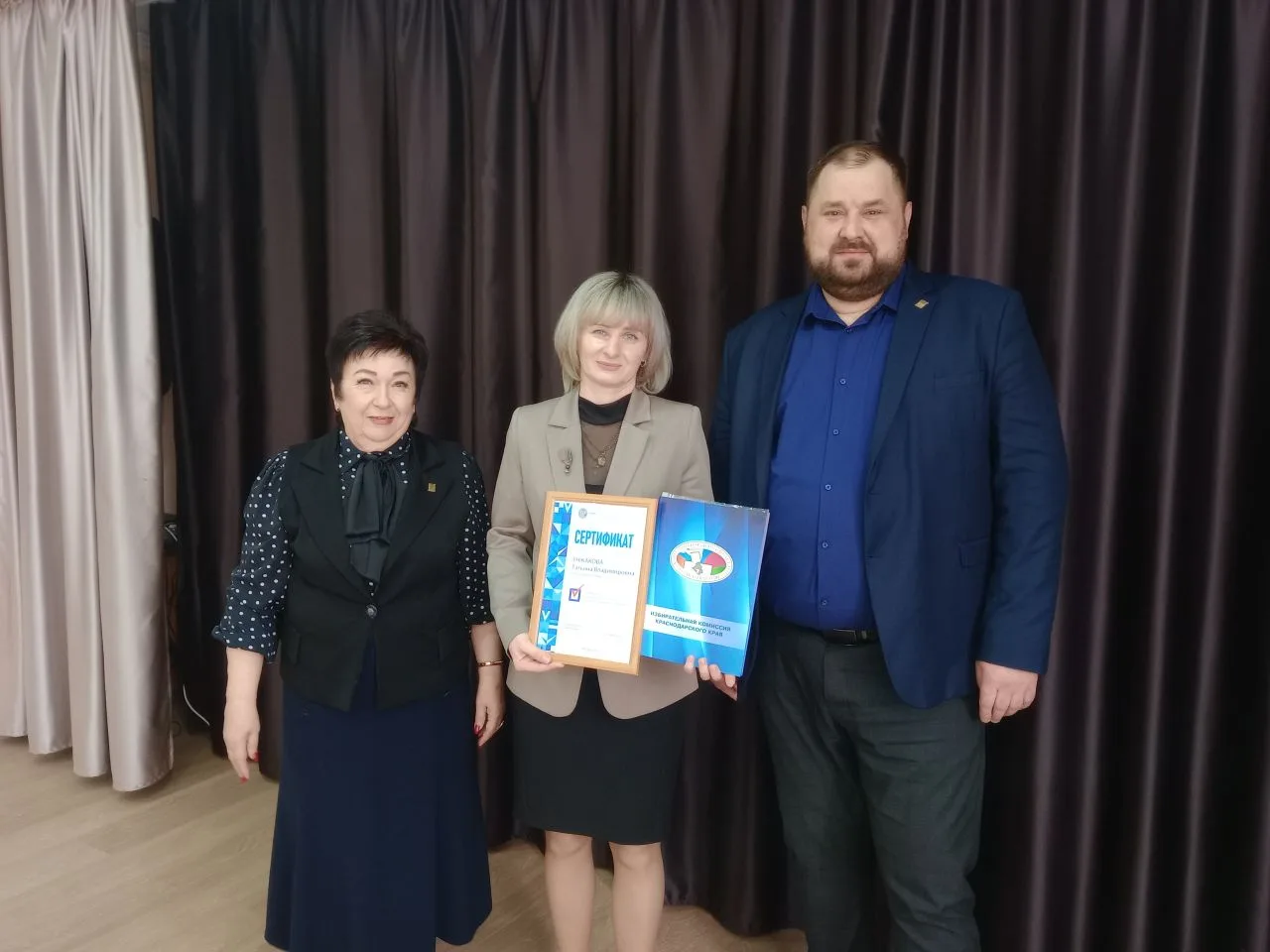 3 апреля 2026 года в торжественной обстановке председатели территориальных избирательных комиссий Ейская районная и Ейская городская Татьяна Чернодырка, Илья Меркаленко вручили Татьяне Унжаковой сертификат ЦИК России и благодарственное письмо председателя избирательной комиссии Краснодарского края Алексея Дмитриевича Черненко.